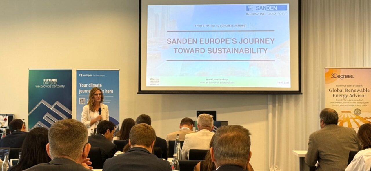 Our company’s sustainability officer Head of Sustainability for Europe at SIE delivered a presentation on Sanden’s sustainability strategy.