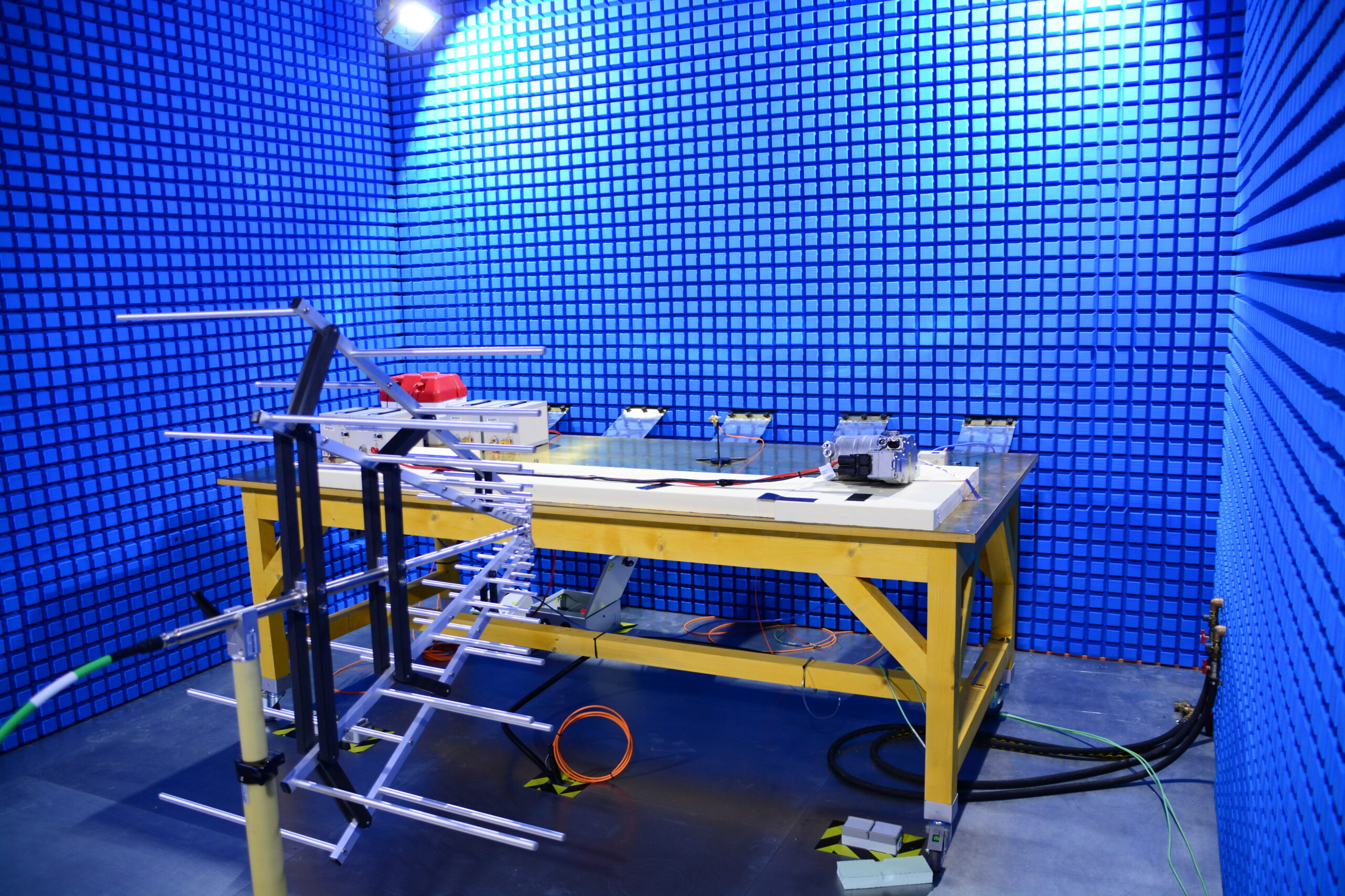 Our Semi-anechoic chamber is fully compliant with CISPR 25 and ISO11452 standards.